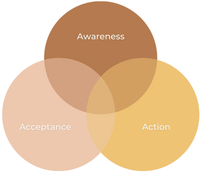 The “3 As” of my coaching practice focus on strengthening the key elements of Mindfulness – Awareness and Acceptance and moving towards Action in the areas that we can influence.